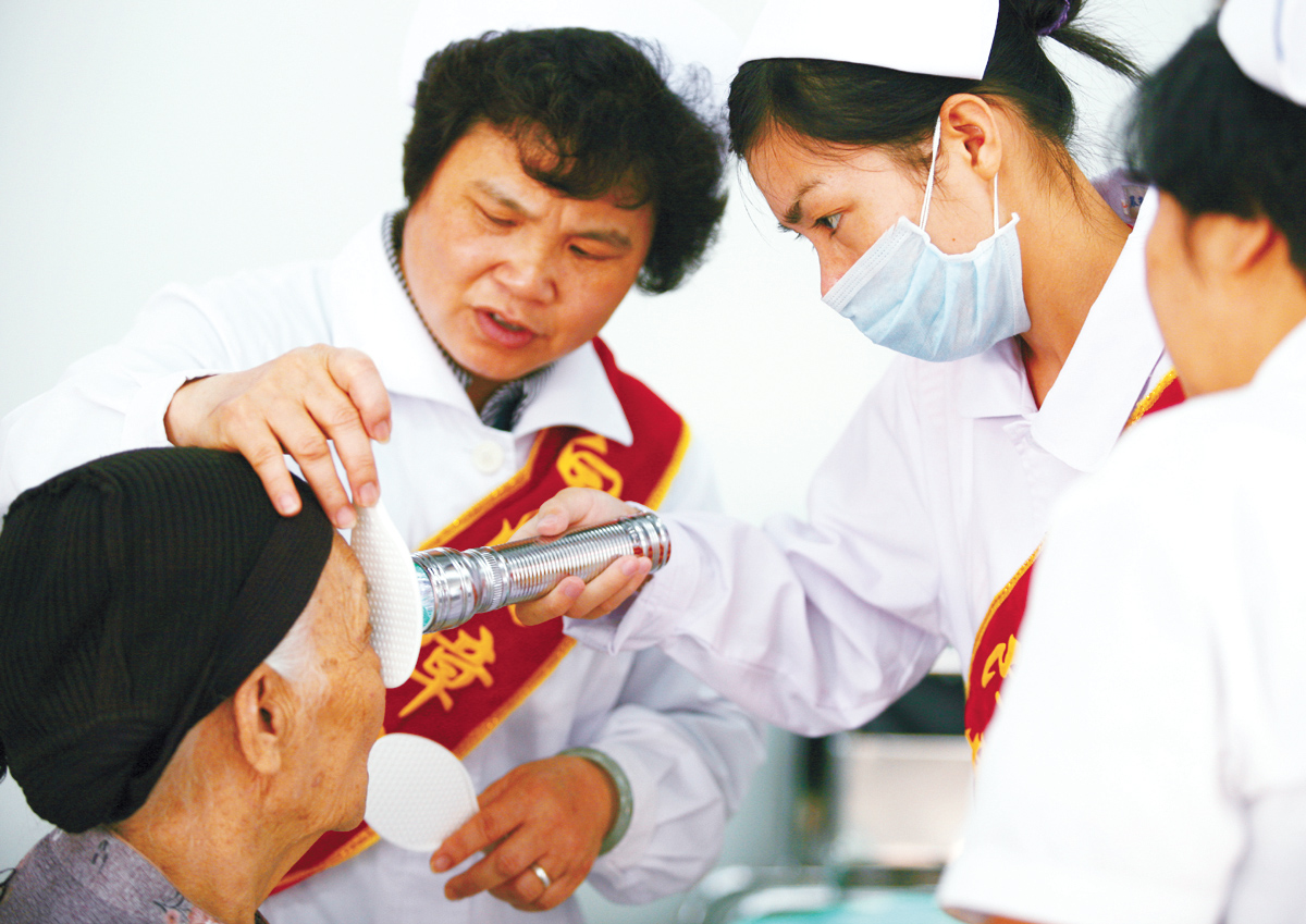 图为市第一人民医院医护人员在给患有白内障的老人检查。 记者 柯人俊 摄