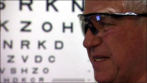 英国BBC网站3月5日报道 最近,美国超视公司(US company Second Sight)研制出的仿真眼眼镜帮助一名失明了30年的73岁老人重见光明,此仪器使用一个架在眼镜上的微型照相机来传输图像到眼后,使盲人能接收到图象 信号.这项高科技发明为失明者带来了新的希望.73岁的罗恩7个月前在伦敦莫尔菲尔兹(Moorfields)眼科医院进行了手术. 他兴奋地说自从戴上仿真眼眼镜后就可以看见光闪动,过马路时会沿着地上的白线标志行走,还能区分袜子的颜色,他的生活彻底改变了.