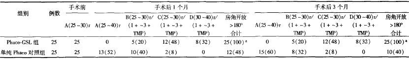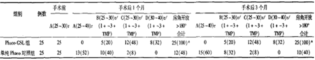 表1 2组患者手术前后房角状态[例数(%)]