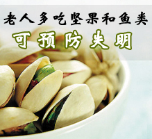悉尼大学研究人员在澳大利亚跟踪研究2454人的饮食情况后发现,对每周吃一两次坚果的人而言,他们10年后患老年性黄斑变性的风险降低35%;对于每周吃一次鱼的人,这一风险可降低31%。