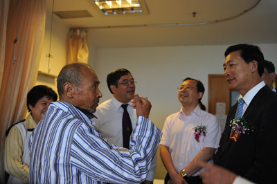86岁的江西省新界县贫困户熊言尚,在江西同仁眼科医院接受光明行的免费白内障复明手术后重见光明。熊大爷是一位53年党龄的乡村退休干部,他对前来病房看望患者的全国人大常委、中国民进副主席朱永新,全国防盲指导组组长、北京同仁医院院长韩德民说:“现在党和国家处处为百姓着想,提倡‘三保’政策,保增长、保稳定、保民生,光明行动又为我们加了一保,就是保光明,这是多么好的惠民工程啊。”