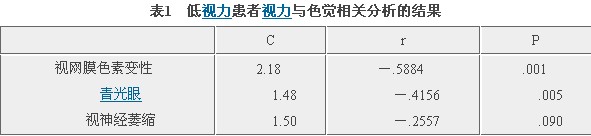 低视力患者视力与色觉的相关性