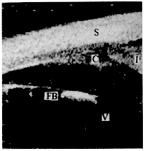 附图 超声生物显微检查眼前节异物图像 S巩膜 C睫状体