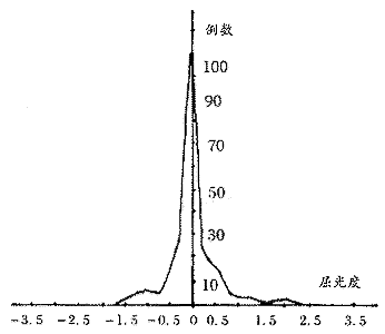 图1 电脑验光屈光度误差分布