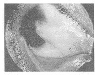 3.2 羊膜作为一种生物材料,曾用于妇科、外科、整形等方面,1940年Dokotth曾将其用于眼科治疗结膜损伤。近几年,Tseng,Shimazaki,叶田野悦子等〔6~8〕应用羊膜移植联合干细胞移植治疗眼化学伤、热烧伤、Stevens-Jonson综合征、眼天疱疮、复发性翼状胬肉取得良好效果。本报告11只眼经6~12个月随访10只眼眼表面稳定,粘连解除,外观改善,视力有所提高,无复发迹象。综合国内外文献报告,羊膜具有以下特点〔9〕:①羊膜厚0.02~0.05mm,是人体中最厚的基底膜,含多种细胞因子,有利于上皮细胞的增殖、分化和移行。②羊膜具有抗纤维化(减轻瘢痕),抗新生血管,抗感染的作用,可改善病灶区微环境。③羊膜不表达HLA-A、B、DR抗原,因而术后不会发生免疫排斥反应。④它含有IV型胶原,Laminin与结膜基质很相似,能提供一个含基底膜和基质成份的胶原支架,一旦被上皮覆盖,与结膜下组织难以区分,⑤具有良好的抗粘连作用,用于伴有粘连,结膜缺损面积较大的病例更显优势,术后避免了唇、鼻粘膜移植所显现的充血、肥厚的外观。Shimazaki、叶田野悦子治疗复发性翼状胬肉的报告和本研究的结果均验证了以上特性。另外羊膜取材方便,来源广泛,成本低,不失为一种富有前景的眼表重建生物材料。