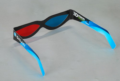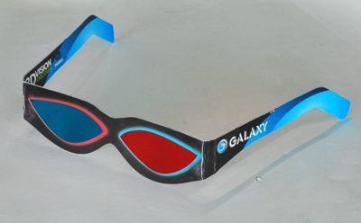 和NVIDIA推出的简易3D眼睛非常相似,影驰3D眼镜镜片也分别采用了红、蓝两个颜色,镜框和眼镜柄采用硬纸设计。