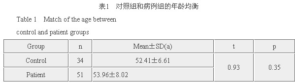 2.1 对照组与病例组的年龄均衡 随年龄增加,视敏度逐渐下降[5],因此须考虑到年龄匹配问题(见表1)。经检验,2组间年龄无显著差异(P>0.10),有良好的均衡性。