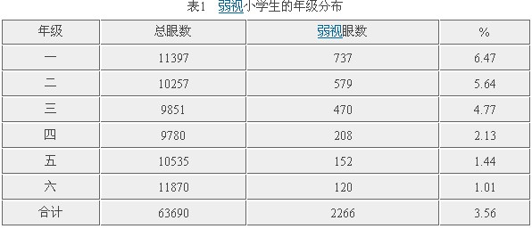 1.1 对象 温州市区在册1~6年级小学生共31847人,共有63690只受检眼作为筛选对象。