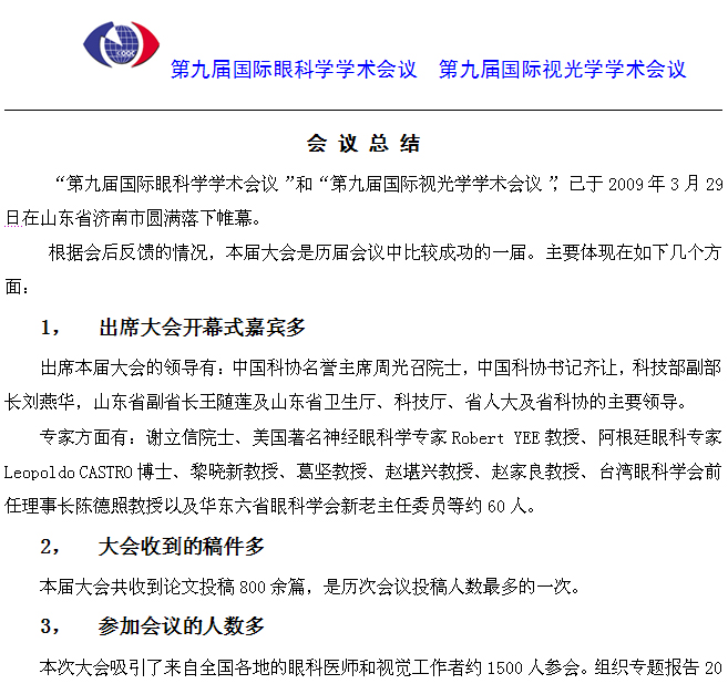 眼睛,中华眼科在线,第九届,国际眼科学,视光学学术,会议总结