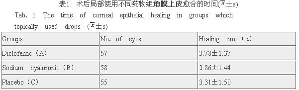 2.4 药物对PRK术后角膜上皮愈合时间的影响(见表1)