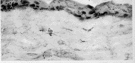 Fig.2 FasL mRNA was present on the normal corneal epithelium and stroma(×400)