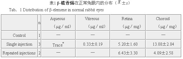 为了解榄香烯在眼部应用的可能性,我们采用气相色谱法对正常兔眼球后注射榄香烯后药物的眼内分布进行了初步研究。
