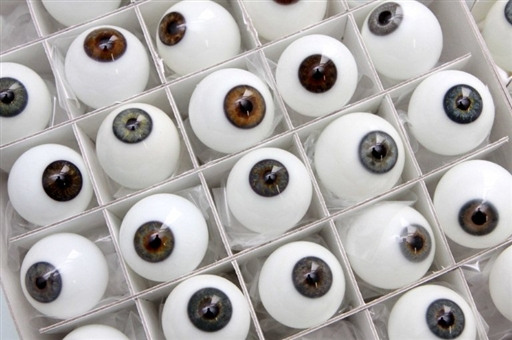 在德国西部城市卡塞尔,一个实验室里摆放着尺寸不同、颜色各异的玻璃义眼。