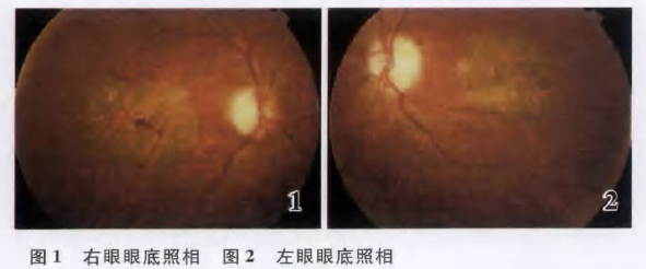 讨论:中心性晕轮状视网膜脉络膜萎缩为常染色体显性遗传病, 以往多认为此病为脉络膜的原发性萎缩, 近年来大多学者认为原发病变为R P E 萎缩, 脉络膜毛细血管萎缩为继发性改变。本病多双眼对称发病, 极少数患者表现为单眼发病, 也有学者报告双眼病变不对称, 1 眼较对侧眼病变重。病变早期患者即出现视力逐渐减退, 中年时因视力明显下降而就诊。病变早期主要表现为黄斑区视网膜色素脱失、R P E 萎缩及色素沉着, 呈椒盐状外观, 随病变进展逐渐出现后极部对称性、圆形或卵圆形R P E 和脉络膜毛细血管萎缩缺失, 病变区内仅见粗大的脉络膜血管, 病灶边界清楚, 多局限于黄斑区或旁黄斑区, 病灶范围内可见锡箔样反光。因本病早期表现与干性年龄相关性黄斑变性相似, 故应注意二者的鉴别, 后期则应与卯黄样黄斑变性、S t a r g a r d t 病等相鉴别” J。本病为遗传病, 无有效的治疗方法。且患者视力预后很差, 造成中心视力的永久性损害。