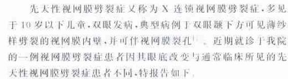 表现特殊的先天性视网膜劈裂症一例