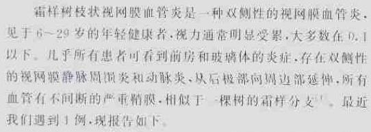 霜样利枝状视网膜血管炎一例