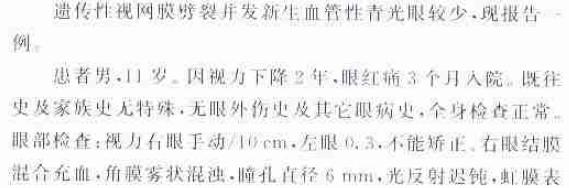 遗传性视网膜劈裂继发新生血管性青光眼一例