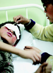 该院副院长、眼科专家王宁利介绍:自2006年北京市烟花爆竹安全管理由“禁放”改为“限放”以来,春节期间发生烟花爆竹伤的患者数量每年递增10%-20%,未成年伤者数量也在增加。并且,随着大型爆竹燃放增多,发生眼部与颅面部复合伤的患者也增多。2009年春节期间,同仁医院收治的京内外231人次烟花爆竹伤患者中,近三分之一是未成年伤者,55人次为12岁以下的儿童,有30多名伤者是致盲性严重眼外伤。