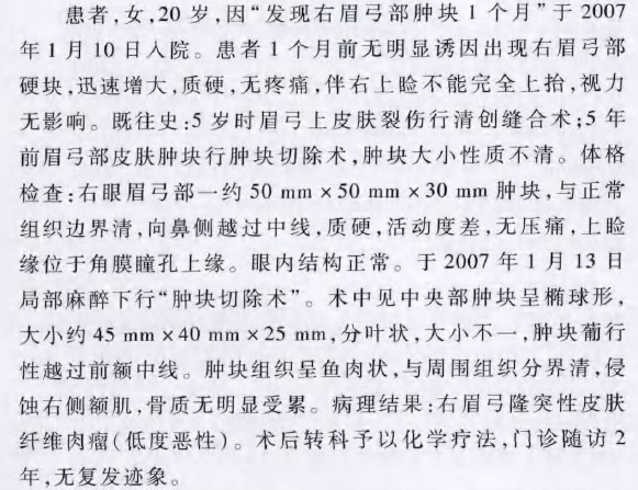 眉弓部隆突性皮肤纤维肉瘤一例