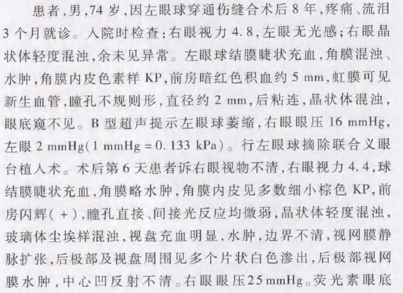 眼球摘除术后交感性眼炎一例