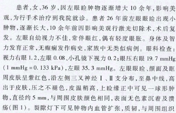 伴有青光眼及高度远视的Sturge-Weber综合征一例