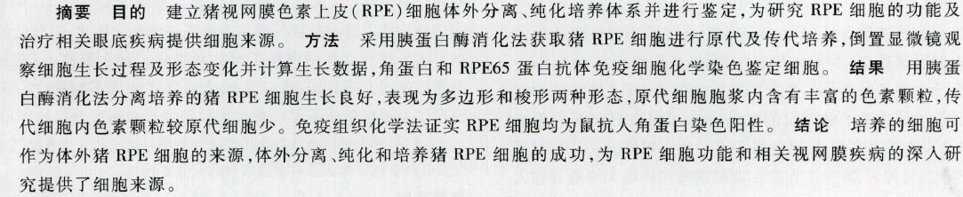 猪视网膜色素上皮细胞的体外培养与鉴定