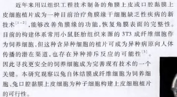 以兔自体结膜成纤维细胞为饲养细胞构建上皮细胞植片