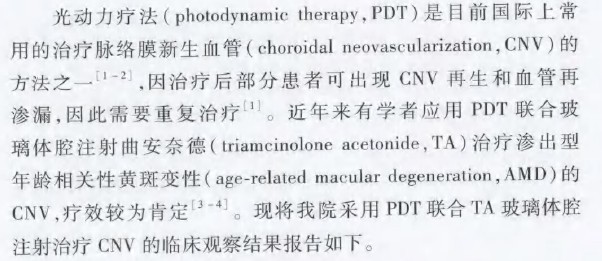 光动力疗法联合曲安奈德玻璃体腔注射治疗黄斑区脉络膜新生血管