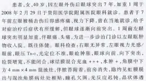 左眼眶巨大肿物并发角膜溃疡一例