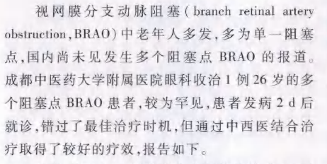 多阻塞点视网膜分支动脉阻塞一例
