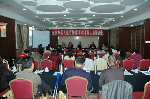 近日,北京市盲人按摩指导中心在北京培新宾馆举办盲人医疗按摩考试考务人员培训班。中国盲人按摩指导中心副主任张明理出席培训班并讲话。来自市盲人按摩指导中心、市盲人学校、市残疾人活动中心、市残疾人体训中心的33名考务人员参加了培训。