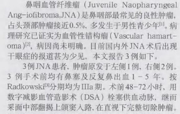 鼻咽血管纤维瘤手术后致干眼症的探讨