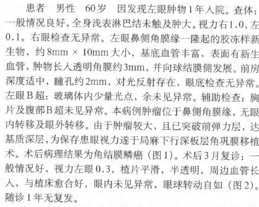 深板层角巩膜移植治疗角结膜鳞癌一例