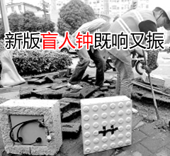 12月13日,由广西壮族自治区南宁市公安局交警支队与生产厂家共同研发的“升级版”盲人钟(用于提示盲人过街的音响装置)在该市星湖教育路口安装完毕。据悉,该款盲人钟兼顾声响提示与振动提示,而且夜间不会扰民,属全国首创的交通设施产品。该项目总投入达60万元,12月18日前,南宁市区10个路口将完成共243块盲人钟的安装。