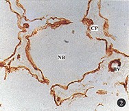 常成人视乳头Ⅳ型胶原蛋白免疫过氧化酶染色横切观察