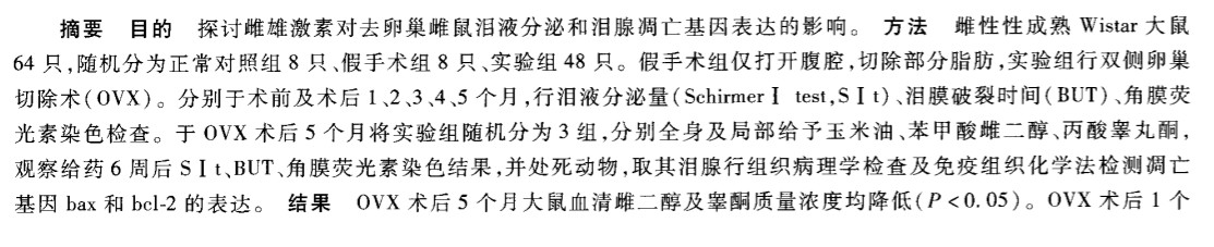 雌雄激素对去卵巢雌鼠泪液分泌及泪腺凋亡基因表达的影响
