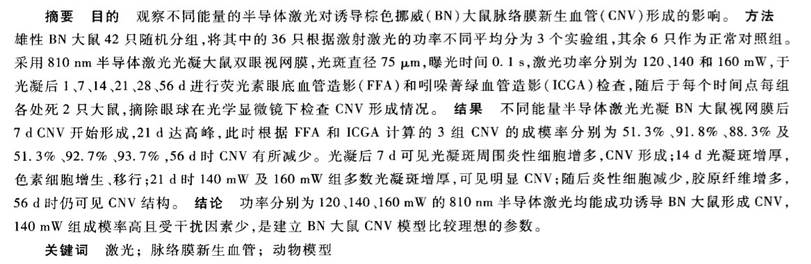 不同能量半导体激光对大鼠脉络膜新生血管形成的影响