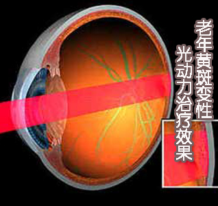 1998年以来,欧美等国家开始将光动力疗法应用于老年性黄斑变性的临床治疗并获得较大成功。该疗法是从静脉注入一种特殊的光敏剂,光敏剂进入血管以后,循环到眼部,然后用一种特殊波长的激光照射黄斑区,使黄斑区脉络膜新生血管萎缩,从而达到治疗目的。这种激光是冷激光,不会产生热量,当它与我们新生血管中的光敏剂分子接触后,就会产生光化学作用,使血管封闭萎缩。