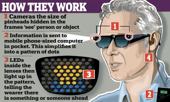 仿生眼镜研制工作由斯蒂芬-希克斯博士领导,英国卫生部为此提供资金支持。希克斯说:“我们能够研制出低成本的仿生眼镜,让盲人从中受益。这项工作给人很大的满足感。”目前,他已经完成基础研究,现正在研制原型。根据他的设想,仿生眼镜采用透明镜片,上面布满小型发光二极管,镜框外部顶角安装针头大小的摄像头。摄像头负责获取信息而后通过线路传输给佩戴者口袋内只有手机大小的电脑。电脑对信息进行处理并简化成点阵。镜片中的发光二极管随后点亮点阵,让佩戴者了解有关前方物体的信息。