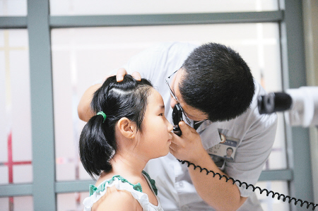 “从7月初开始,每天的门诊量就一直在攀升。”四院副院长王文辉说,门诊儿童眼科每天有6位医生坐诊,平时一天的患者大概就50人左右,而从暑期开始,最多的一天达到600人,医生连上厕所都要挤时间。