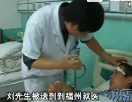 福建福安的刘先生6号时在家经历了惊险一瞬间,他在家设宴招待客人,喝了点酒后,他不小心从凳子上摔倒在地,手中的一根筷子竟然不慎插入左眼。