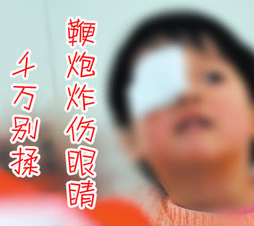 湘雅医院眼科、烧伤科值班医护人员告诉记者,春节期间因燃放烟花鞭炮住院的病人约有30多个,多数是小孩,比往年多。“如果小朋友不小心被烟花爆竹伤了眼睛,家长应马上用干净的餐巾纸或者纱布遮住受伤处,千万不能用手揉眼睛,如果不清楚入眼物品的性质,最好当时不作清洗,以避免处理不当而加重病情。” |