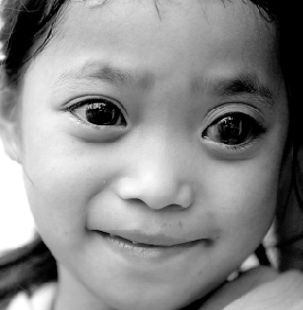 照片中的11岁小女孩叫施和衣,患有先天性眼疾,有一双异于常人的大眼睛。
