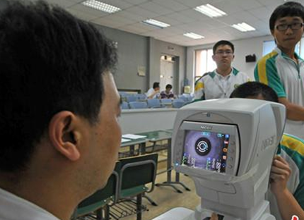 日前,天津医科大学总医院眼科专家走进实验中学为学生进行视力普查。此次普查通过对裸眼视力、斜视、电脑验光、人工验光等方面的检查,以提高学生们对保护视力的重视。