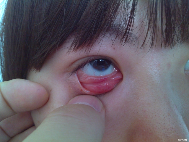 女性,22岁,双眼红1年,一直于我院们诊按结膜炎治疗,曾予抗病毒,典必殊等药物治疗,效果均不理想