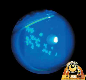 一名没有临床相关病史的34岁男性因畏光、流泪和右眼异物感3天而到急诊科就诊。用荧光素染色的裂隙灯检查显示一种形态为末端呈球形的分叉树枝状角膜病变。在单纯疱疹性上皮角膜炎(由该病毒在角膜表面的活动性复制导致)中,这类病变是典型的。医师给予该患者3%阿昔洛韦眼用软膏治疗14天,每天5次。上皮角膜炎是单纯疱疹病毒所致眼部感染的一种常见表现。它有可能作为一种原发性感染发生,但更常由潜伏病毒再活动导致。在大多数情况下,该病况自然消退。鉴于抗病毒疗法的低毒性和因单纯疱疹病毒感染导致角膜并发症的可能性,医师通常给予抗病毒疗法。在该病例,随访检查显示症状完全消退,并且没有角膜溃疡,视力没有受到影响。(邵佩 译) |