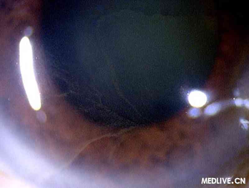 建议其停止服用此药,请心内科医生会诊.改用其他药物替代治疗。随诊3个月后,患者畏光消失,轻微异物感消失。眼部检查:视力:右眼0.4,左眼0.6,双眼矫正不应。双眼结膜无明显充血,角膜上皮棕色颗粒沉着大部分消失,余眼部查体同前。