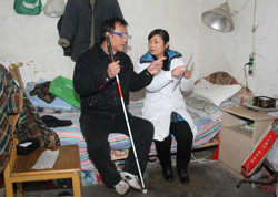 11月26日,安徽省淮北市相山区残联工作人员在相南办事处西城社区回访领取低视力助视器的居民沈加林。安徽省实施残疾人事业专项彩票公益金贫困低视力患者康复项目,经过筛选,为全省4000名贫困低视力患者免费配戴助视器。