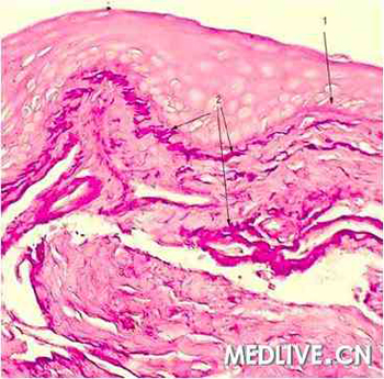 e. 上皮基底膜、前弹性层、角膜前基质层有嗜碱性钙化颗粒
