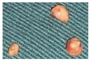 图1 从患者泪小管中取出的黄白色颗粒状物